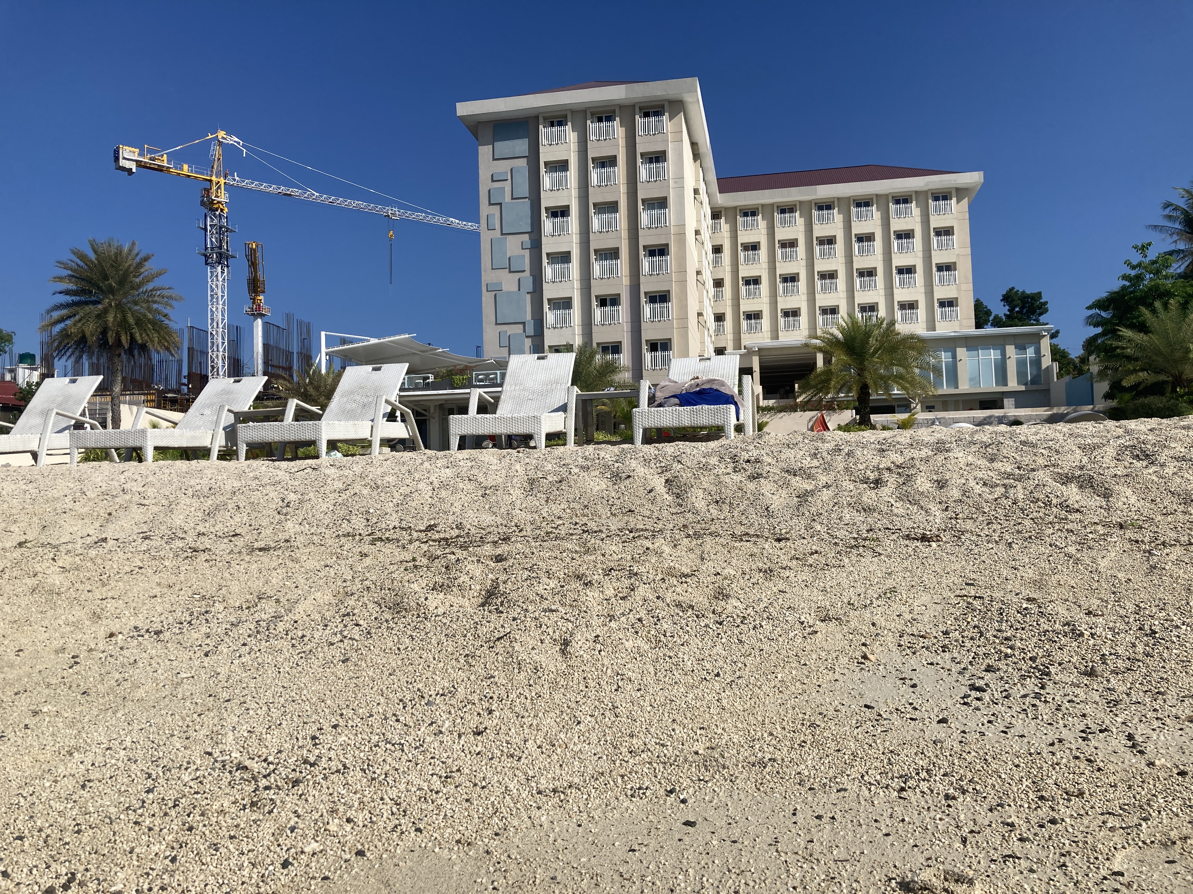 왼쪽에 있는 타워크레인은 리조트 옆에 공하사는 곳입니다.